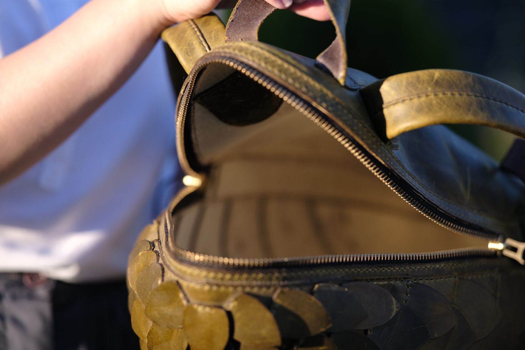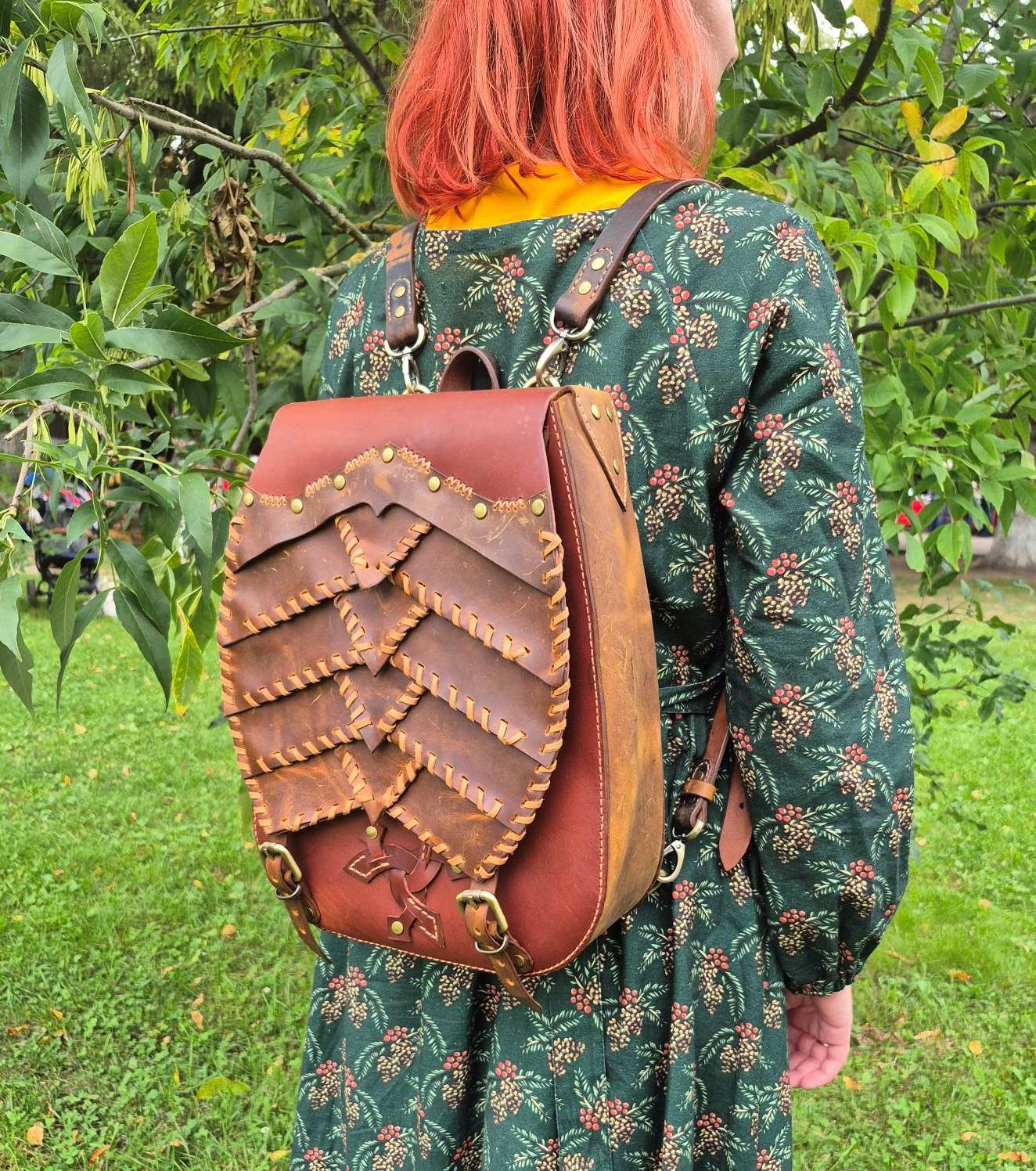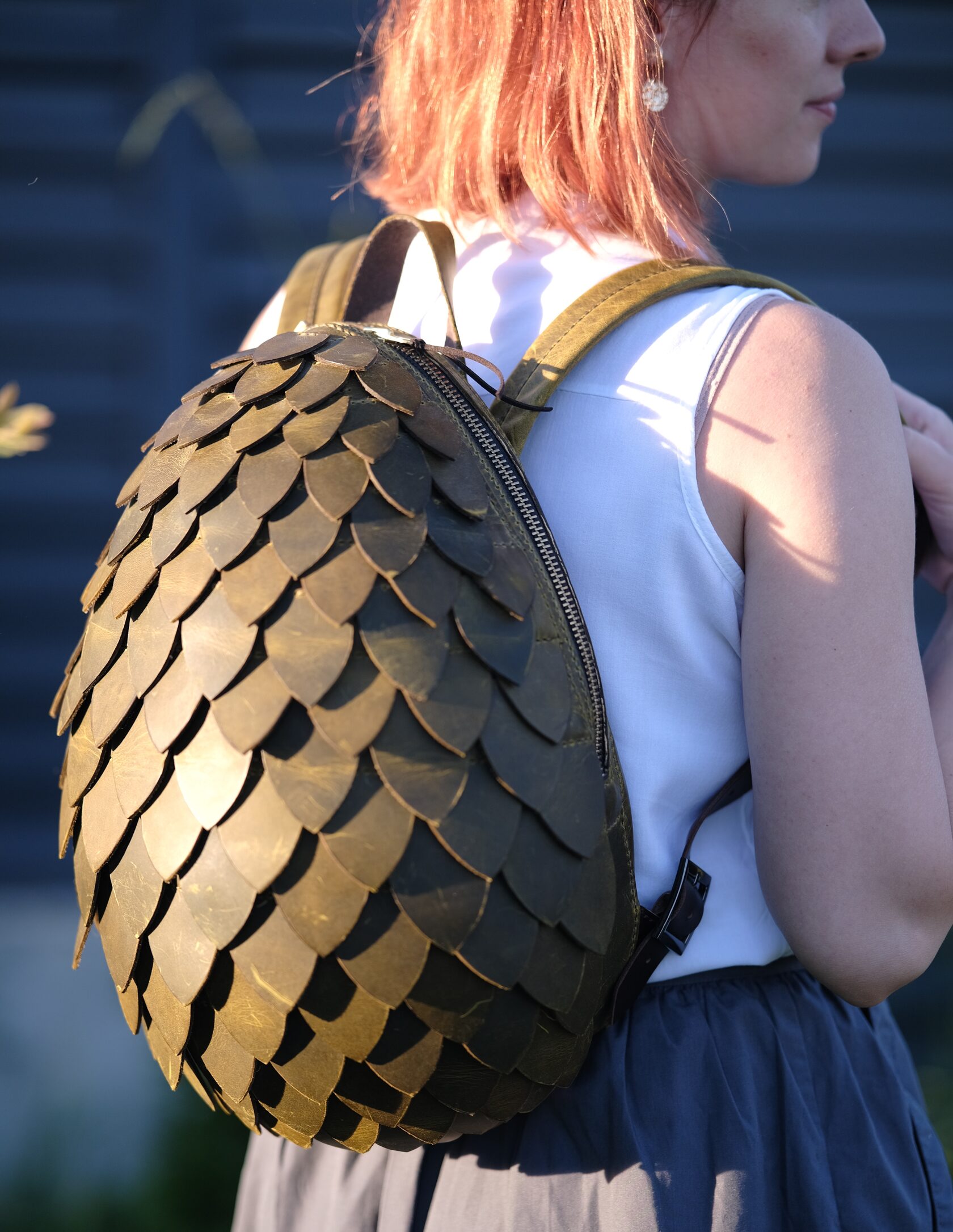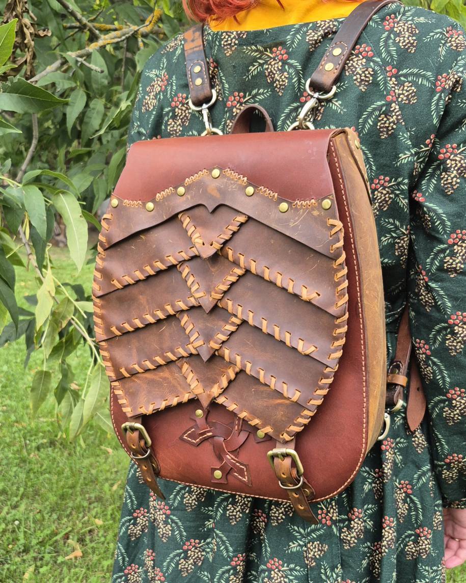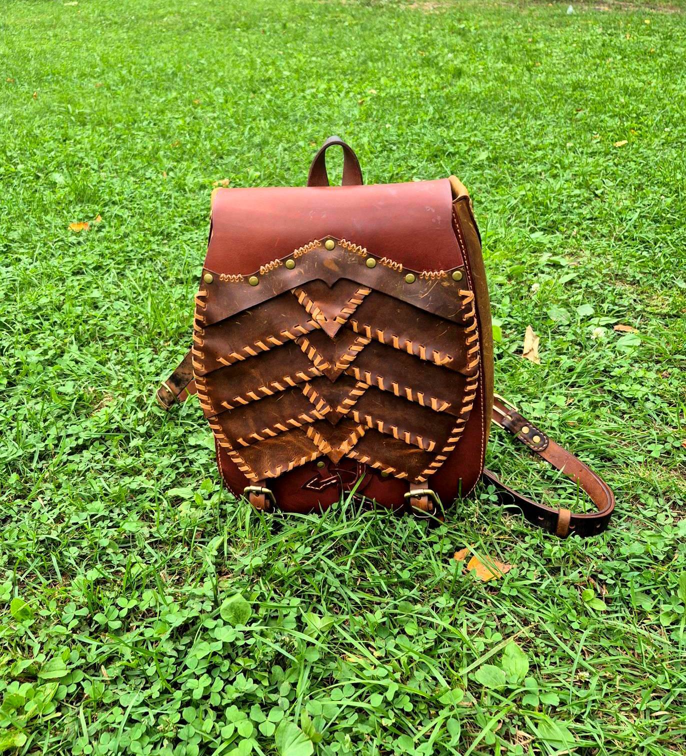 Эксклюзивный рюкзак из натуральной кожи ручной работы, вдохновлённый легендами о драконах. Каждая чешуйка вырезана и закреплена мастером вручную, создавая эффект настоящей драконьей брони. Вместительный и надёжный, он станет ярким акцентом образа и символом силы, свободы и магии.