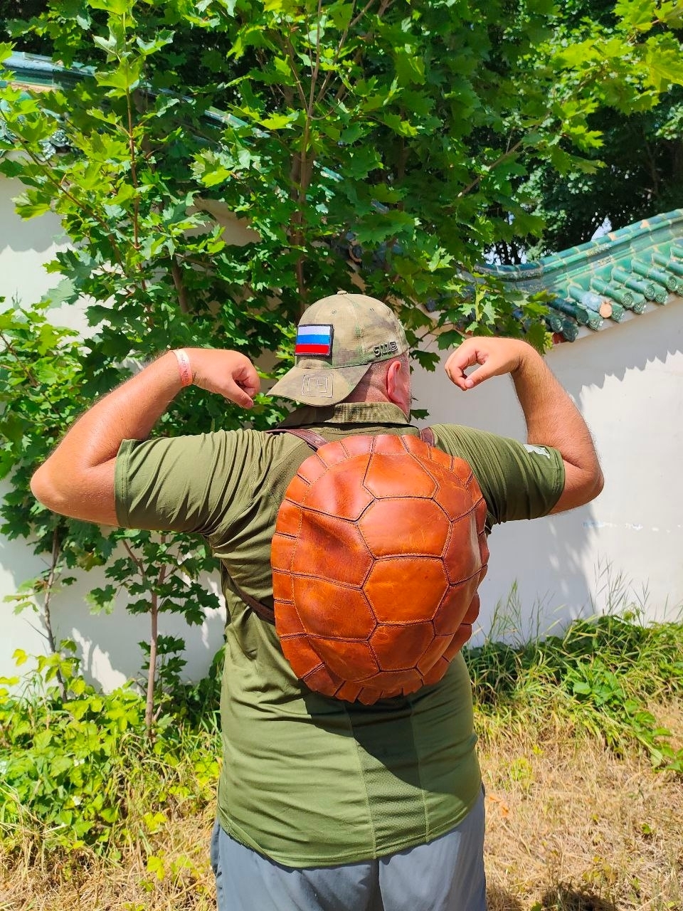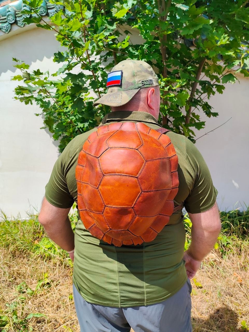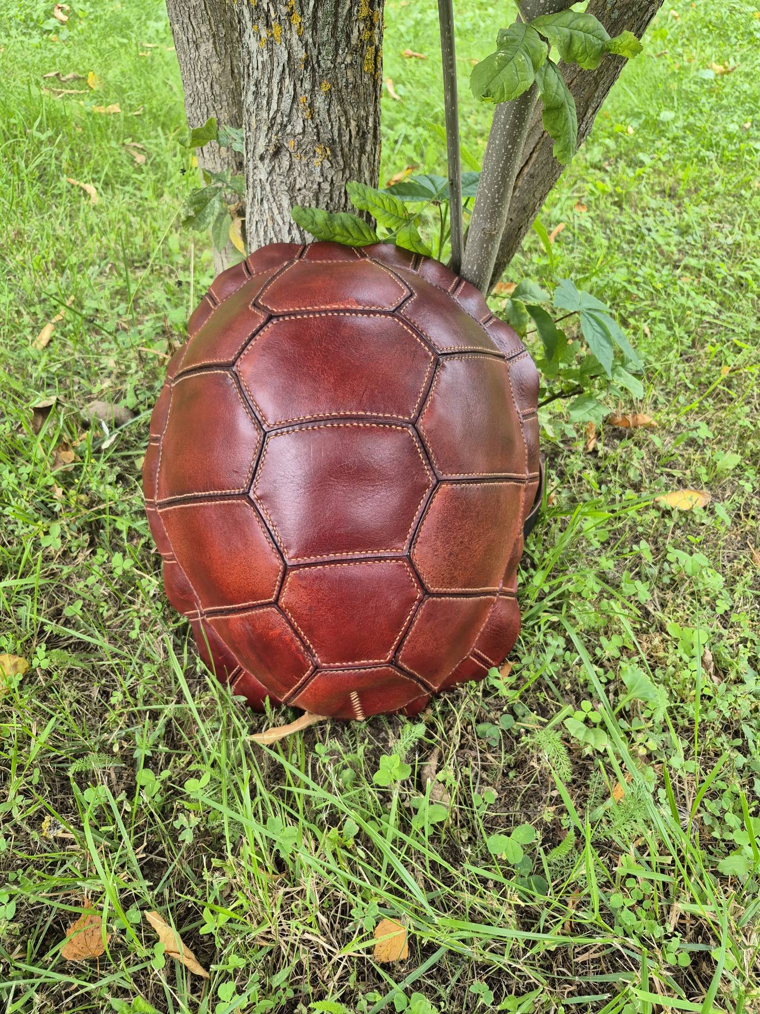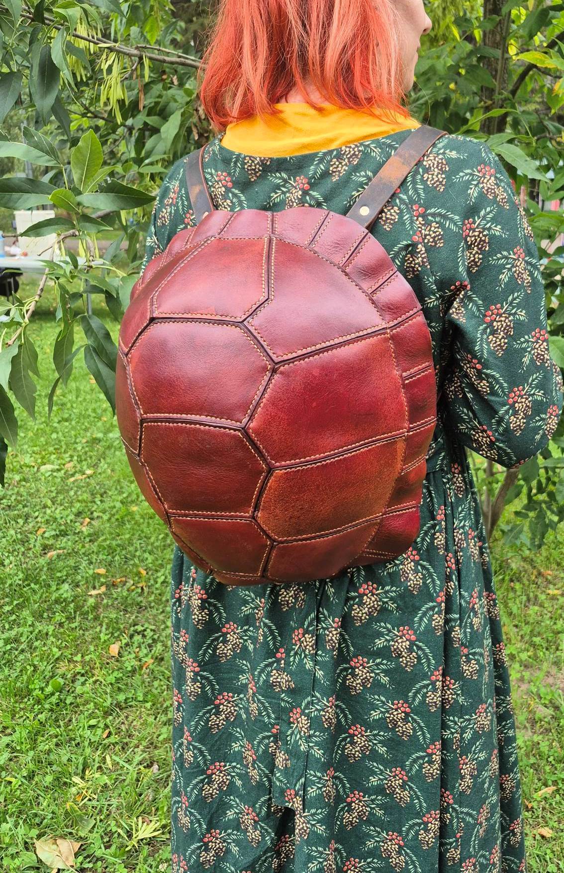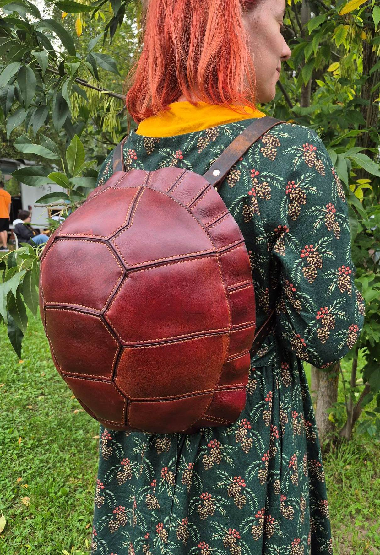 Рюкзак ручной работы из натуральной кожи, выполненный в форме черепашьего панциря. Оригинальный дизайн в сочетании с прочностью и вместительностью делает его не просто аксессуаром, а символом надёжности и уникального стиля.