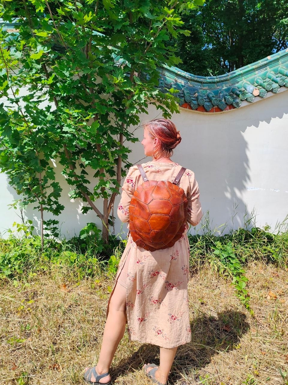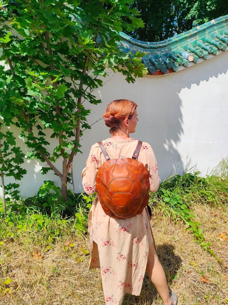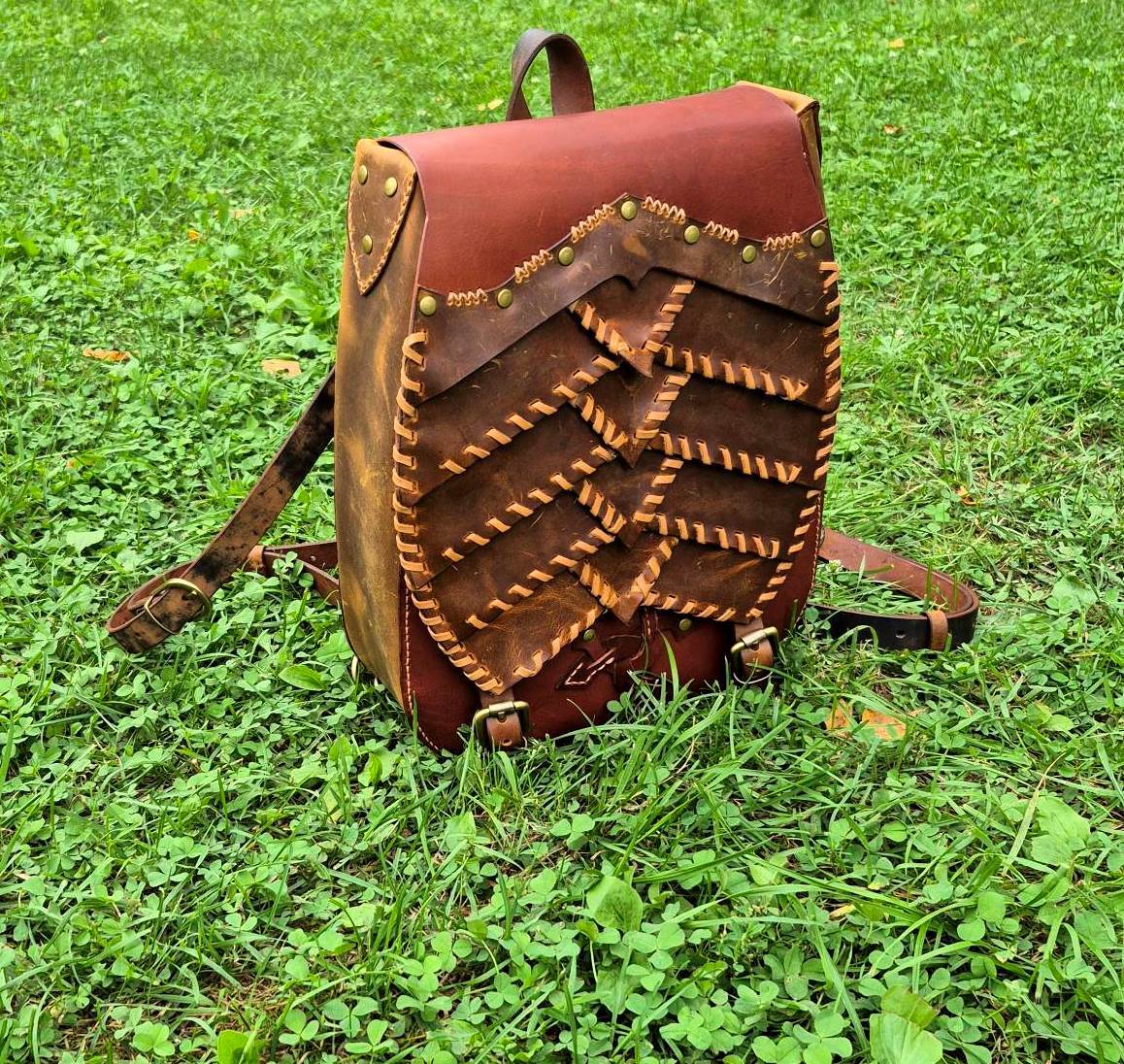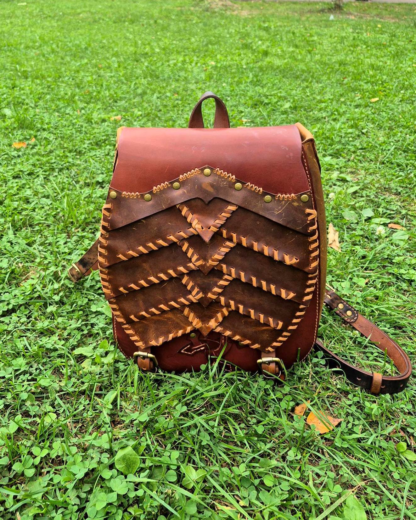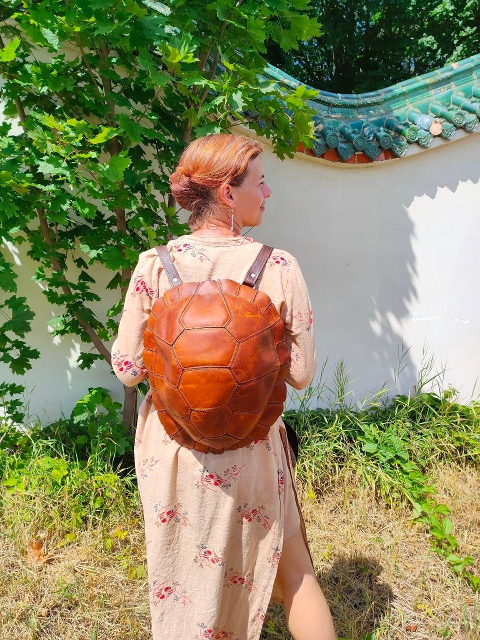 Рюкзак ручной работы из натуральной кожи, выполненный в форме черепашьего панциря. Оригинальный дизайн в сочетании с прочностью и вместительностью делает его не просто аксессуаром, а символом надёжности и уникального стиля.